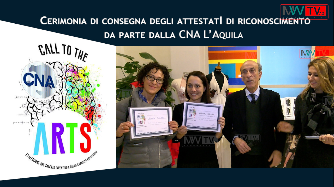 Calorosa e affollata partecipazione Oggi 04 dicembre alla cerimonia di consegna di un attestato di riconoscimento da parte del direttore dalla CNA L’Aquila Agostino Del Re Ringraziando 15 portatori di professionalità in un confronto aperto con le nuove imprese e i mercati di riferimento in occasione dell’evento “Call to the ARTS” organizzato da CNA L’Aquila presso il prestigioso Palazzo dell’Emiciclo dall’1 ad oggi 4 dicembre.