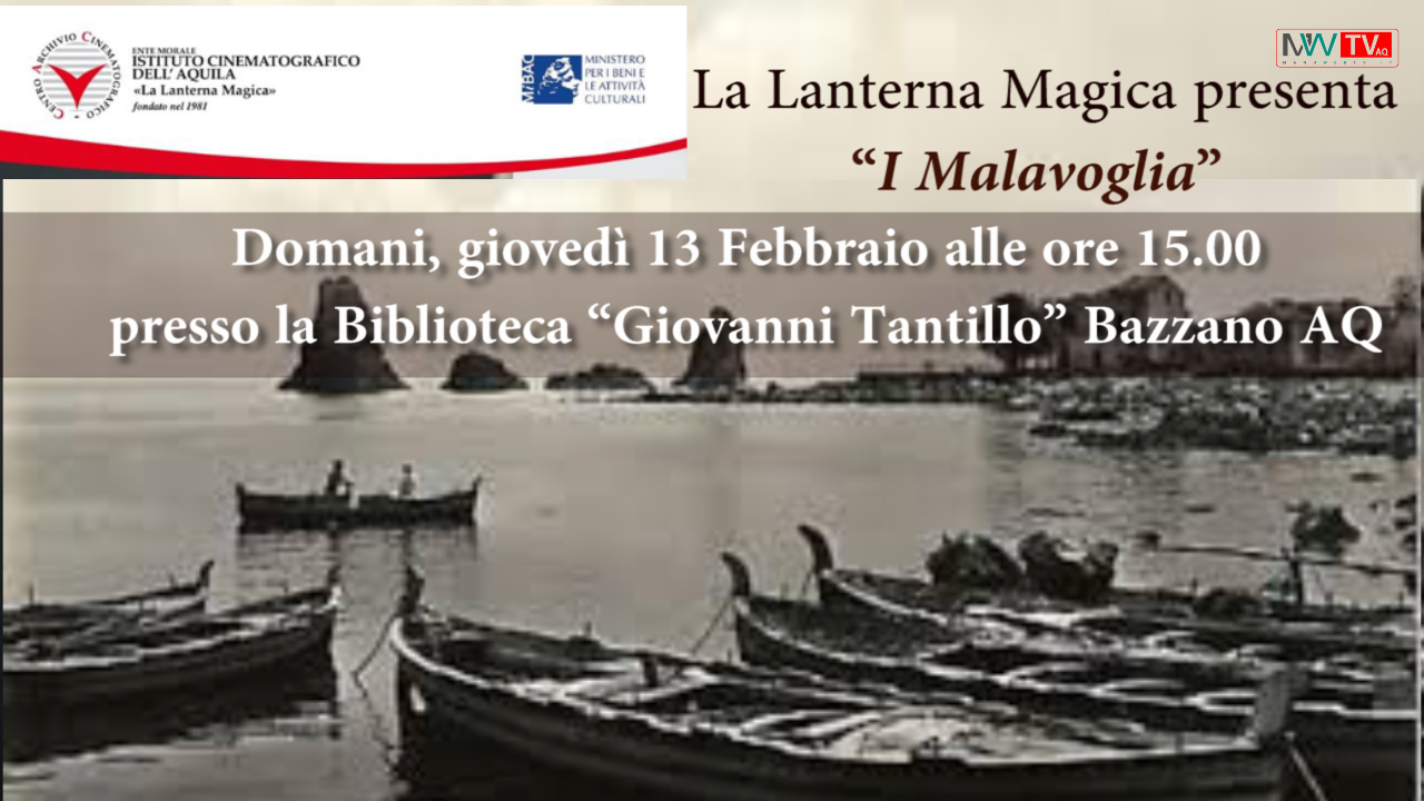 L’AQUILA – Sarà il romanzo di Giovanni Verga lo spunto di riflessione e di approfondimento per un nuovo appuntamento culturale incentrato sulla letteratura ed il cinema. Domani, giovedì 13 Febbraio alle ore 15.00 presso la Biblioteca “Giovanni Tantillo”, nei locali della Biblioteca Regionale ”S. Tommasi”, in programma la proiezione del film I Malavoglia di Pasquale Scimeca (Italia, 2011), lungometraggio conservato nel Centro Archivio Cinematografico. A seguire è previsto il consueto momento di approfondimento a cura del Prof. Roberto Biondi sull’omonimo romanzo di Giovanni Verga del 1881.