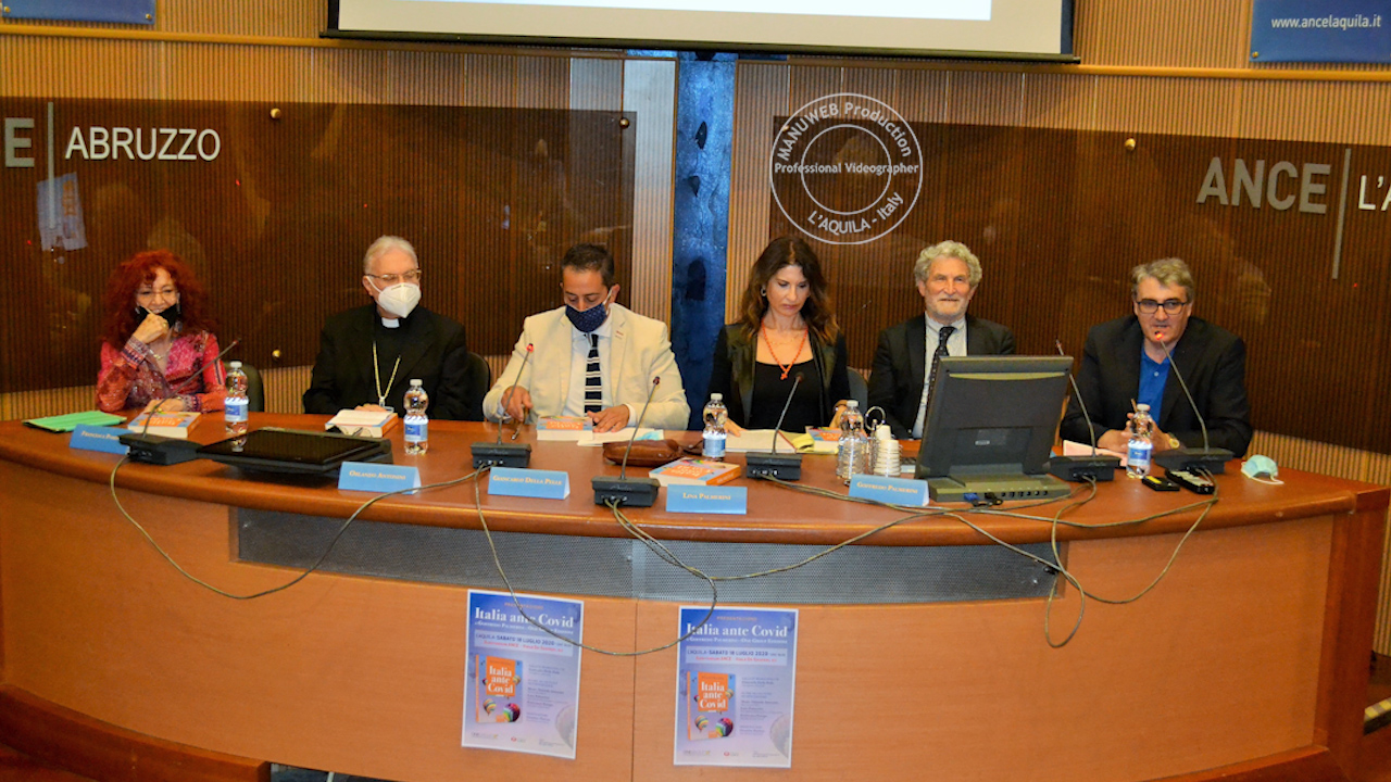 L’AQUILA – presentato a L’Aquila presso l’Auditorium ANCE , il nuovo libro di Goffredo Palmerini “Italia ante Covid” (One Group Edizioni), Con i relatori :La giornalista parlamentare Lina Palmerini, caposervizio del quotidiano economico Sole 24 Ore, Mons. Orlando Antonini, Nunzio apostolico e studioso insigne di architettura religiosa e urbana, Francesca Pompa, presidente One Group Edizioni e Giustino Parisse, giornalista e scrittore, che coordinato l’incontro.Presente anche il Consigliere comunale Giancarlo Della Pelle che ha portato il saluto della Municipalità, delegato dal sindaco Biondi.