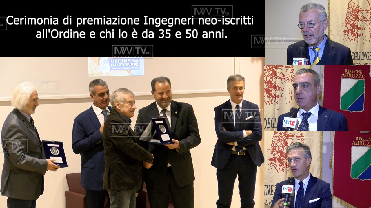 La cerimonia e stata trasmessa Integralmente in diretta Streaming dalla nostra redazione . “Occorre che l’ingegnere di oggi e di domani – ha precisato – abbia una visione di ampio respiro che sappia coniugare architettura e capacità di progettazione ingegneristica”.Un concetto ribadito anche dal Segretario del Consiglio Nazionale Ingegneri Ing.Angelo Valsecchi Gli ingegneri sono stati accolti anche dal saluto dell’Amministrazione territoriale : Assessore alla ricostruzione del Comune dell’Aquila Ing.Vittorio Fabrizi che è stato tra i premiati di oltre 35 anni di iscrizione, Assessore Regione Abruzzo Dott.Guido Quintino Liris, Vice presidente della Provinciale Dott. Vincenzo Calvisi che nel fare gli auguri ai neo iscritti all’ordine hanno sottolineato come “l’etica della responsabilità sia importantissima in questa professione.