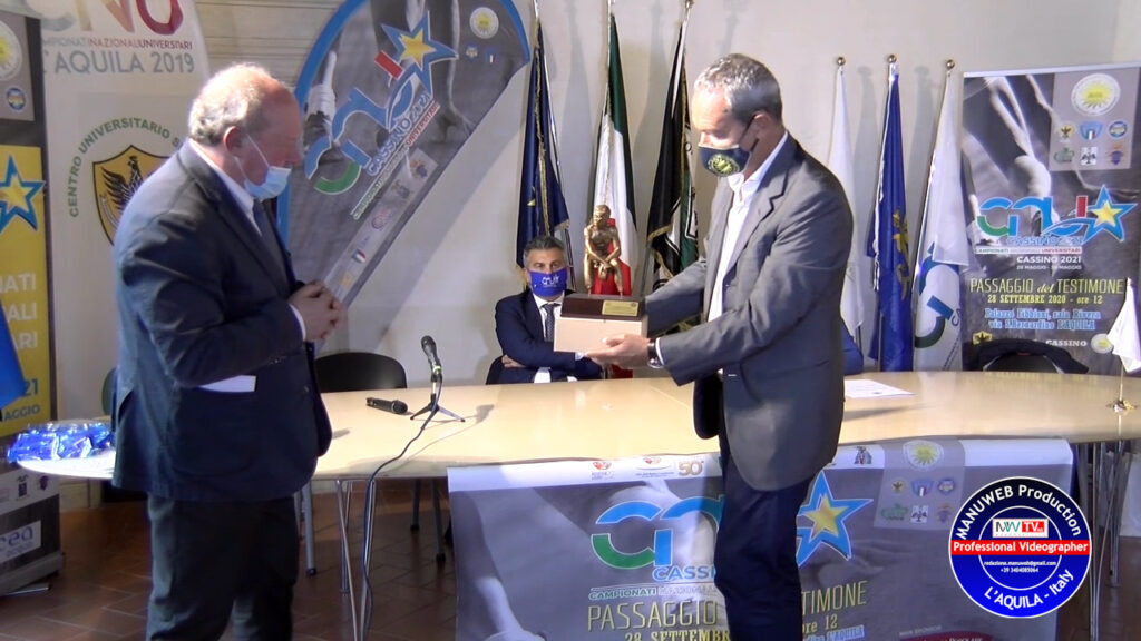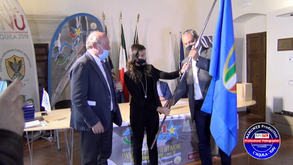 La consegna della bandiera del Centro universitario sportivo nazionale (Cusi), da parte del rettore dell’Università dell’Aquila Edoardo Alesse, nelle mani del rettore dell’Università di Cassino e del Lazio Meridionale, Giovanni Betta, ha solennemente sancito il passaggio di consegne tra l’Aquila e Cassino dell’organizzazione dei Campionati nazionali universitari 2021.