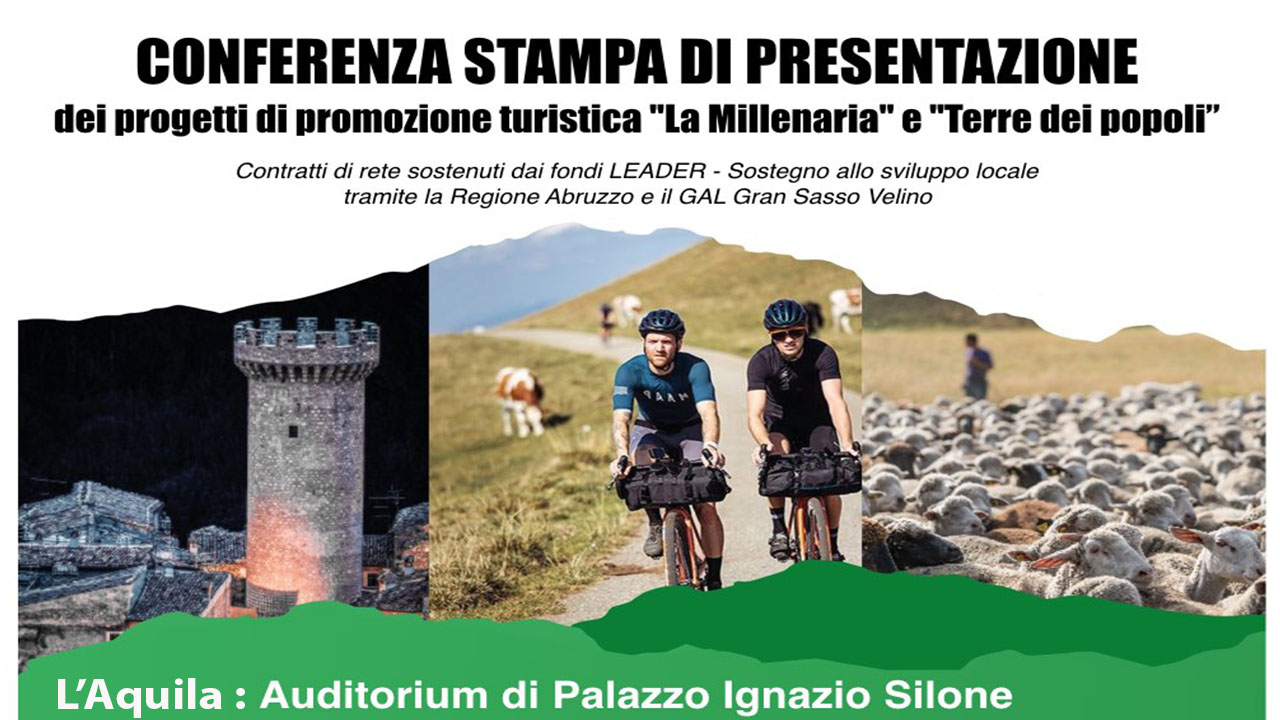 L’Aquila, 6 luglio 2022. – Si terrà domani, giovedì 7 luglio 2022, alle ore 11, nella sede dell’Aquila della Regione Abruzzo (Auditorium di Palazzo Silone), una conferenza stampa per illustrare i progetti di promozione turistica denominati “La Millenaria” e “Terre dei popoli“, attivati nell’ambito dei contratti di rete sostenuti dai fondi Leader (sostegno allo sviluppo locale tramite Regione Abruzzo e Gal Gran Sasso-Velino).