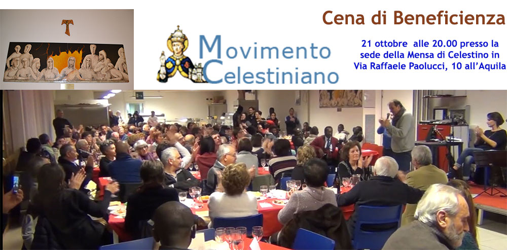 Il Movimento Celestiniano dell’Aquila organizza per il 21 ottobre prossimo alle 20.00 presso la sede della Mensa di Celestino in Via Raffaele Paolucci, 10 all’Aquila una Cena di Beneficenza. Si tratta di un momento di incontro e di scambio socio-culturale che favorisce convivialità utile alla Fraterna Tau – Onlus per continuare a sostenere il suo lavoro in favore dei più poveri e degli emarginati. All’indomani dell’uscita del Rapporto Caritas 2016 sulla povertà e l’esclusione sociale, in occasione della Giornata Mondiale per la Povertà, la Fraterna Tau Onlus conferma l’andamento nazionale, presentando i dati sull’assistenza.