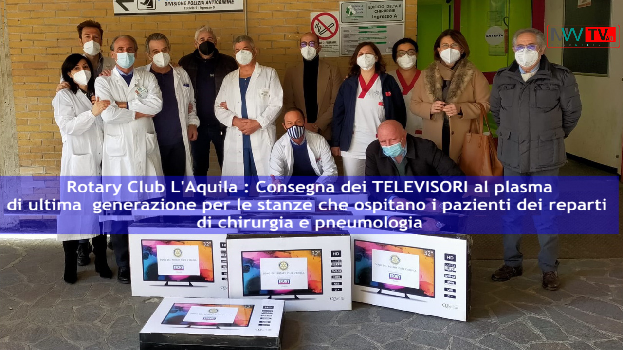 L’Aquila 13 Marzo 2021, Il Rotary Club L’Aquila ha consegnato questa mattina al reparto di chirurgia diretto dal dott. Roberto Vicentini e a quello di pneumologia del dott. Paolo Carducci sei televisori al plasma di ultima generazione con relative staffe per installazione a muro destinati alle stanze che ospitano i pazienti. La presidente del Rotary, dott. Marisa D’Andrea ha sottolineato che come questo piccolo gesto potrà essere utile ai malati specie in un periodo tanto difficile e di isolamento.