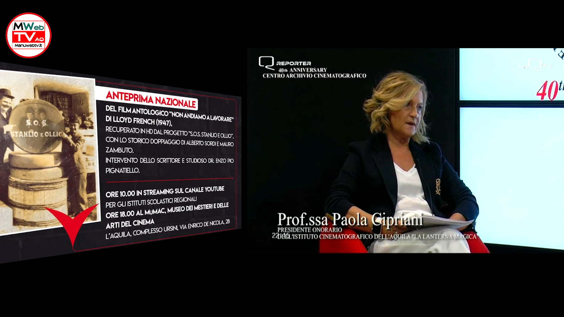 Lanterna Magica riservata agli Istituti Scolastici Regionali. Alle ore 18.00 Enzo Pio Pignatiello introdurrà la visione del film al MuMAC, Museo dei Mestieri e delle Arti del Cinema, L’Aquila, Complesso Ursini, Via Enrico De Nicola, 28, dove sarà possibile visitare anche la mostra Stanlio e Ollio fanno 100. 1921-2021 (dalle ore 16.00 alle ore 20.00).