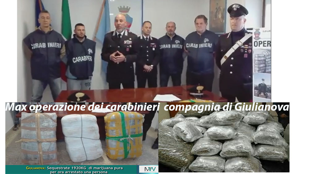 1920 kg di di marijuana suddivisa in panetti di un chilogrammo ,è il bilancio di max operazione dei carabinieri della compagnia di Giulianova . In carcere una persona considerata il trafficante di droga.