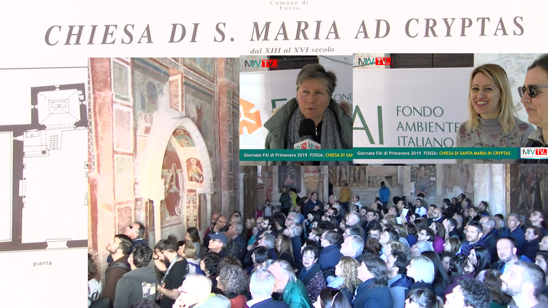 FOSSA : File lunghissime e tempi di attesa che non hanno scoraggiato le centinaia di persone impazienti di visitare i luoghi eccezionalmente aperti al pubblico grazie alle Giornate FAI di primavera. Fra i luoghi aperti quello della chiesa di Santa Maria ad Cryptas Dopo un lungo intervento di restauro strutturale e conservativo, conseguente all’evento sismico del 2009, ha nuovamente riaperto i battenti offrendo al godimento pubblico una rara testimonianza di pittura parietale abruzzese di età medievale incredibilmente sopravvissuta.