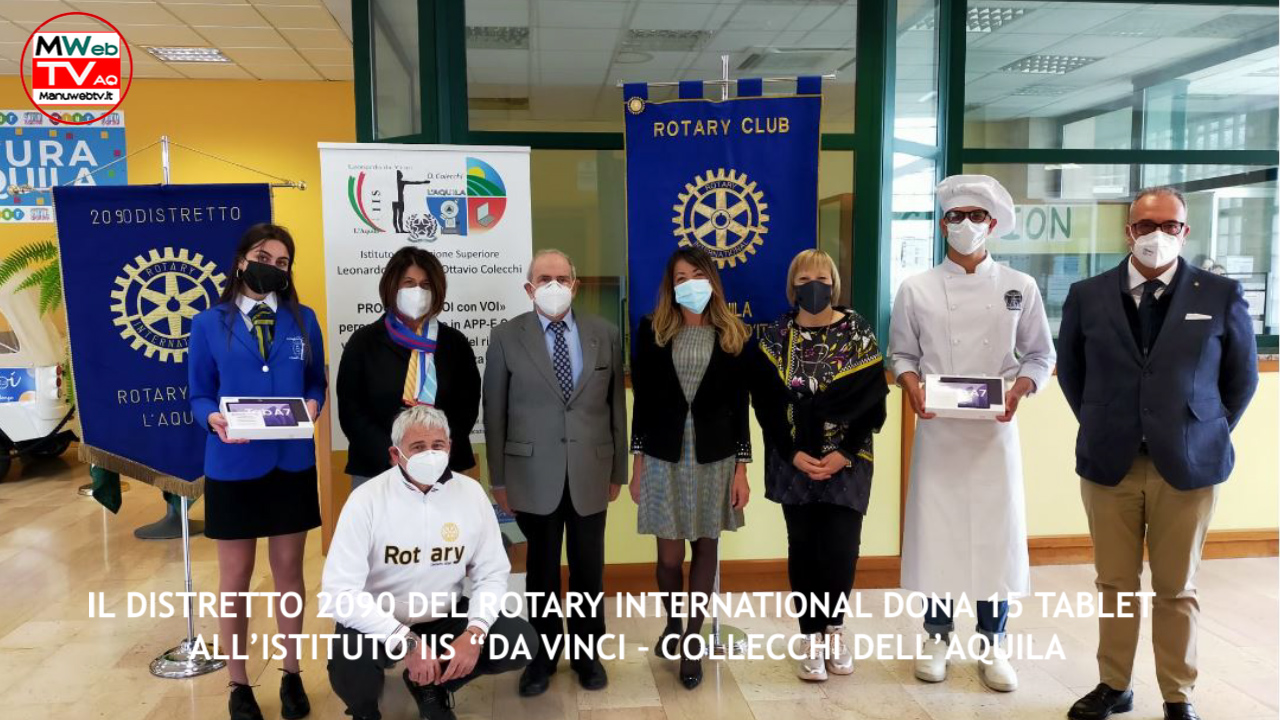 Il Distretto 2090 del Rotary International (Abruzzo, Molise, Marche e Umbria) ha aderito al progetto Rotary-USAID per fornire un sostegno alle famiglie colpite dal Covid. Per questo è stata ottenuta, grazie soprattutto al lavoro dell’attuale Governatore Rossella Piccirilli, l’approvazione delle autorità statunitensi a fornire, nelle regioni del distretto, un sostegno ai ragazzi appartenenti a famiglie che per ragioni economiche non possono dotarsi di strumenti tecnologici per la didattica a distanza. Grazie alle indicazioni fornite dall’Ufficio Scolastico Regionale, è stato inserito l’istituto aquilano “Da Vinci – Collecchi” quale beneficiario di una donazione di 15 TABLET Samsung Galaxy da mettere a disposizione di ragazzi che per le ragioni sopra indicate evidenziano la necessità di disporre di una apparecchiatura per seguire le lezioni a distanza.