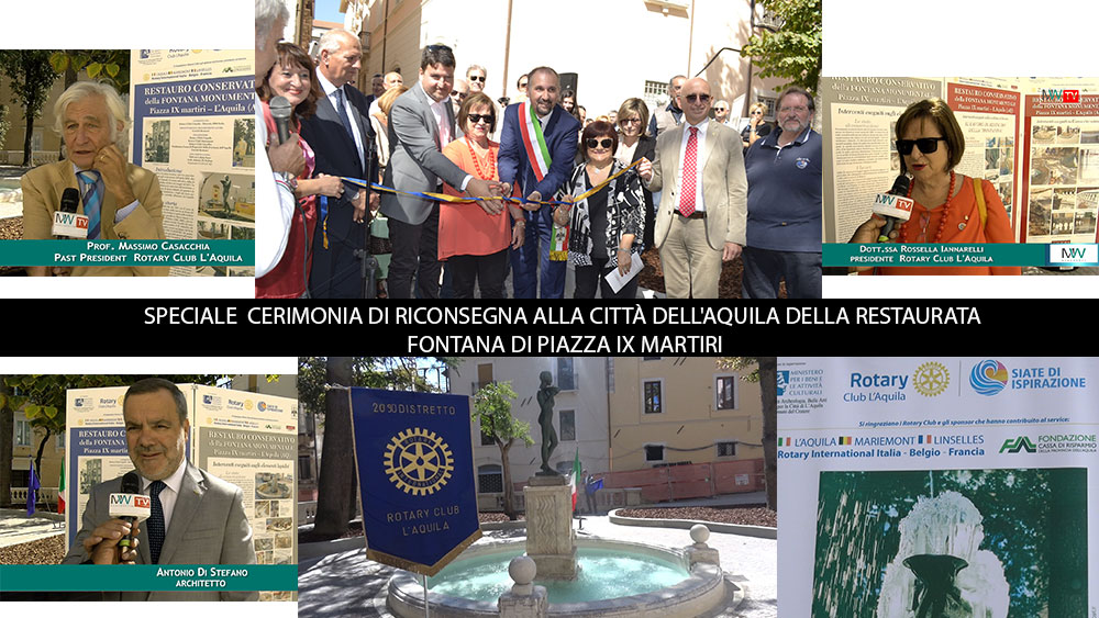 Rinascita completata per piazza IX Martiri e per la fontana con la scultura bronzea, della la “Montanina”, all’Aquila, a nove anni dal sisma del 6 aprile 2009.