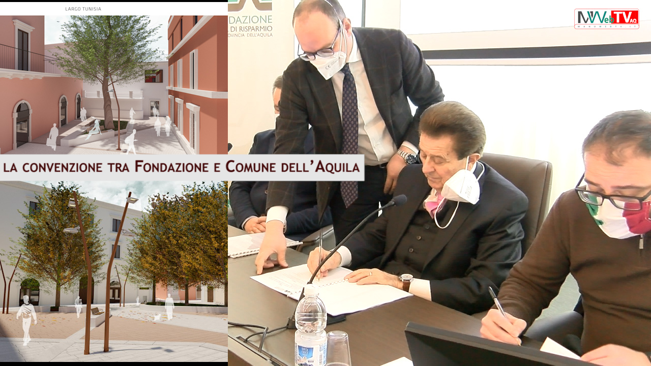 Dopo l’approvazione del progetto da parte della Giunta Comunale nella giornata di ieri, questa mattina il Sindaco dell’Aquila, Pierluigi Biondi, e il Presidente della Fondazione Carispaq, Domenico Taglieri, hanno sottoscritto la convenzione che consente l’avvio dei lavori.