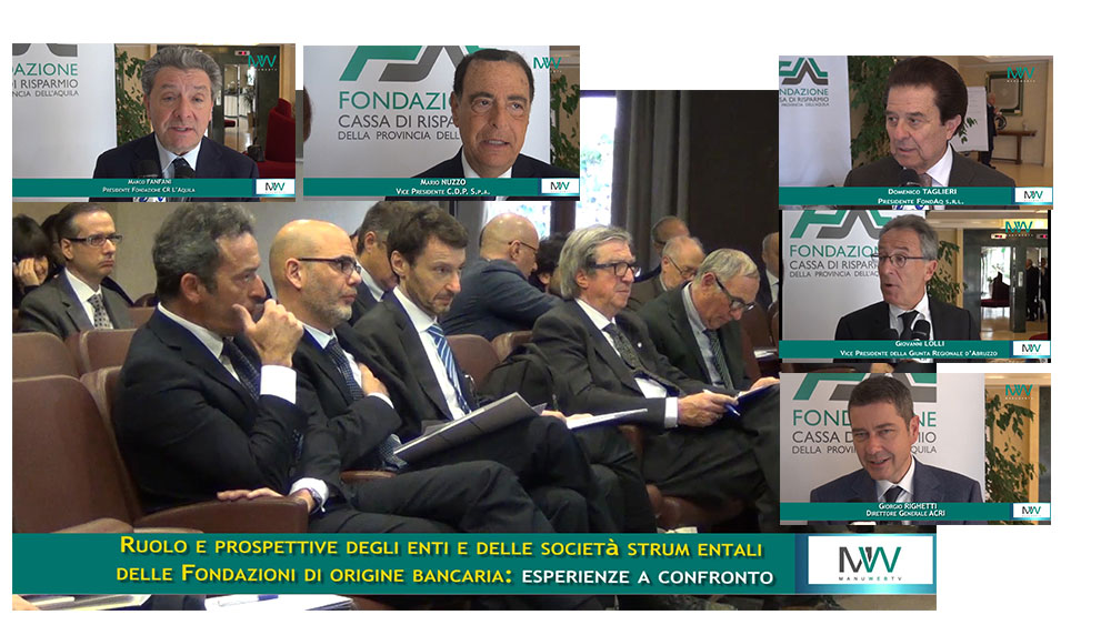 La Fondazione Cassa di Risparmio della Provincia dell’Aquila, con il patrociniodell’ACRI (Associazione delle Fondazioni di origine bancaria e delle Casse di Risparmio), ha organizzato, all’Aquila, nella giornata odierna,l’incontro sul tema: il Ruolo e le prospettive degli enti e delle società strumentali delle Fondazioni di origine bancaria: esperienze a confronto”.