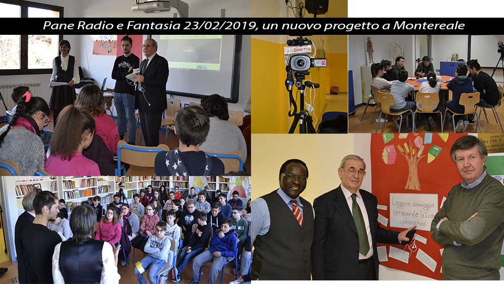 Il progetto “Pane Radio e Fantasia”, che ha coinvolta la comunità di Montereale e in particolare gli alunni della scuola locale. Il Comune di Montereale, in provincia di L’Aquila, è stato colpito dal sisma del 2009 e da quello del 2016. Gli studenti hanno lavorato sulla Convenzione ONU sui diritti dell’infanzia e del l’adolescenza e inizieranno a interagire con lo strumento della radio come mezzo di espressione per far sentire la loro voce. Protagonista di questo spazio insieme ai ragazzi è stato Radio L’Aquila 1 e lo speaker Vanni Biordi.La registrazione e la messa in onda in diretta a cura di Emmanuel Ntawizera (Facebook Manuwebtv)