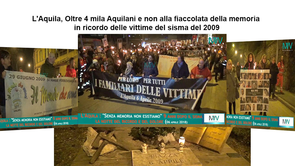 L’Aquila e gli aquilani non dimenticano: Centinaia di persone, come ogni anno, si sono date appuntamento in via XX Settembre, fiaccole in mano e lacrime agli occhi, per attraversare il cuore ancora in parte ferito del capoluogo abruzzese in memoria di quelli che non ci sono più.